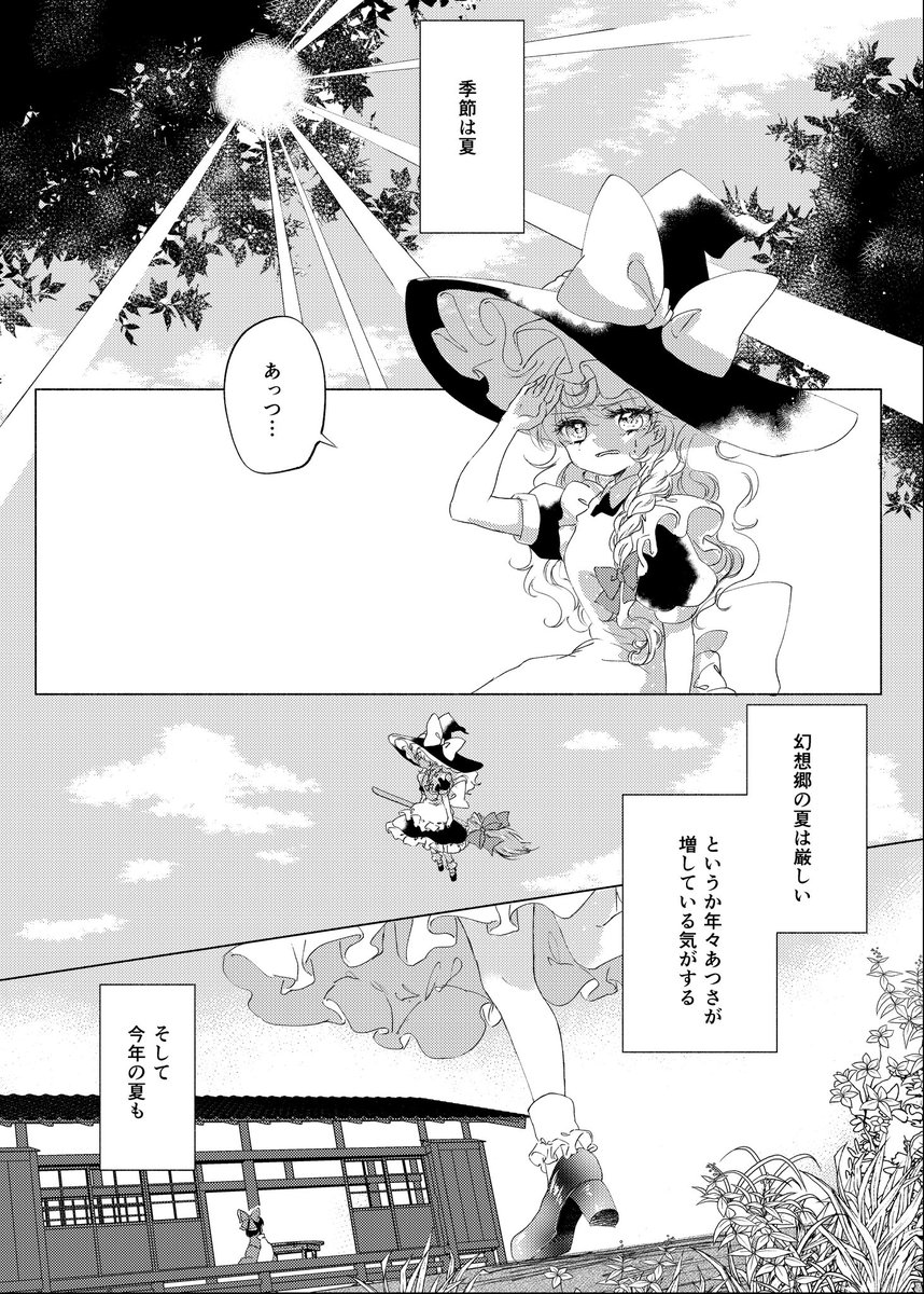 新刊『ステキな夏をこれから』のサンプルです。B5/本文24ページの魔理沙がもやもやしたりするレイマリ本です。