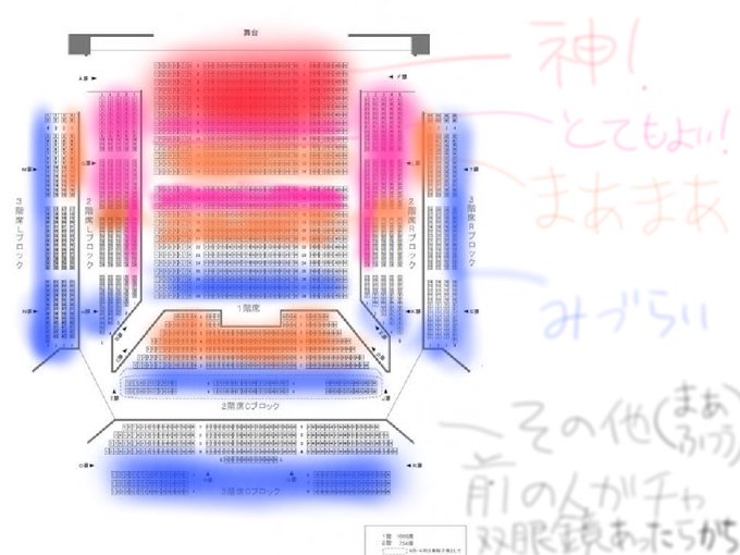 体感こんなんS席の意は一般的なアイドルステージの場合のアリーナ1〜7列目辺りまでなのか、FG○みたいにアリーナ全部+2階席前方7日、どっちなんだ〜い‼️ twitter.com/nayuta_cos_/st…