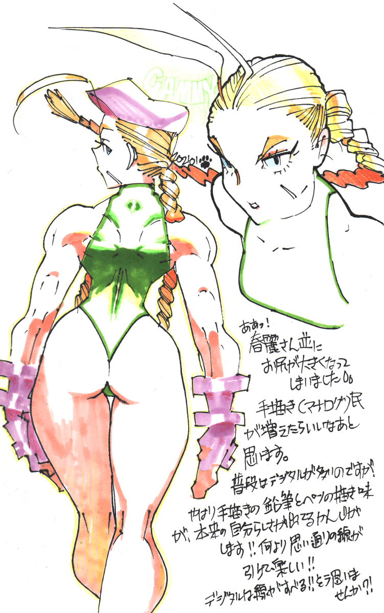 #格ゲーキャラ描こうぜ #キャミィ #Cammy #ストリートファイター #StreetFighter キャミィちゃん好きです。 同人誌のフリートークな雰囲気で文章も描いてみました。 マジックペンの線画に、コピックと色鉛筆で着彩。