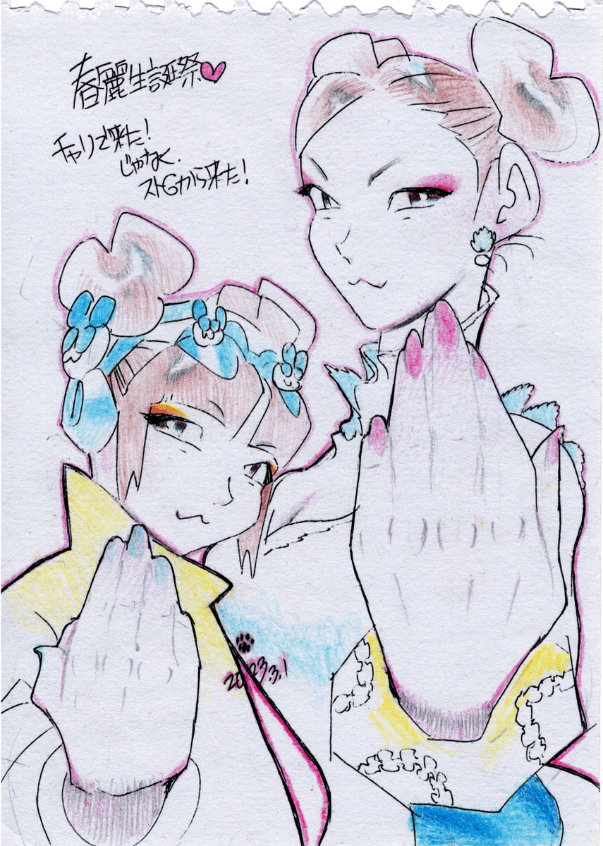 #格ゲーキャラ描こうぜ #春麗 #Chunli #キャミィ #Cammy #ストリートファイター #StreetFighter 夏は肌見せ服のキャラが見たい! 鉛筆&マジックペン&色鉛筆&コピックな、アナログ絵のキャミィさんと、春麗さんです!
