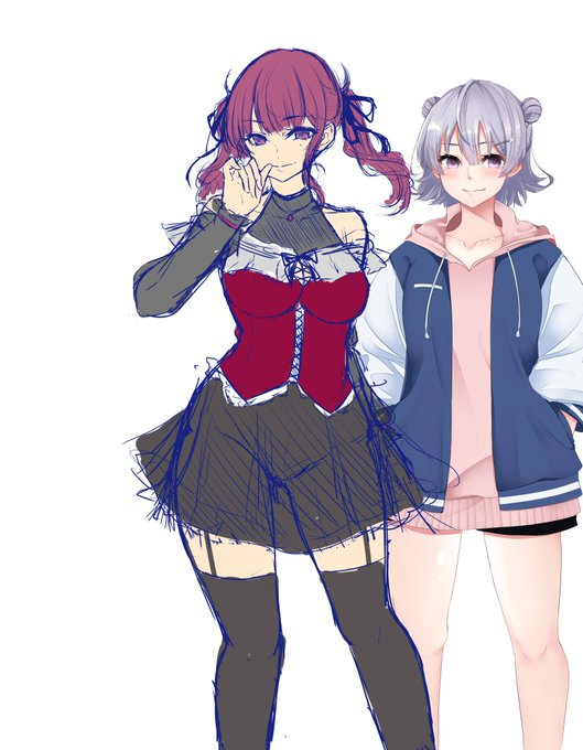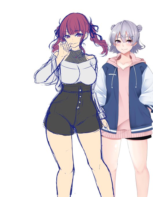 花梨ちゃんパイセン立ち絵進捗! 六花ちゃんと服の系統違いすぎて六花ちゃんのシンプルが引き立つ…!(はず!)