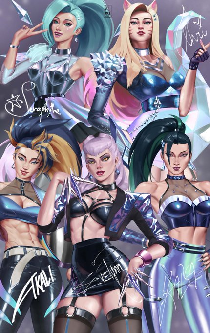 KDA all out series is complete! 🥰 Seraphine, Ahri, Akali, Evelynn and Kai'sa wallpaper version below #ArtOfLegends #LeagueOfLegends