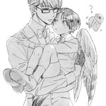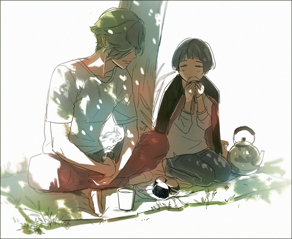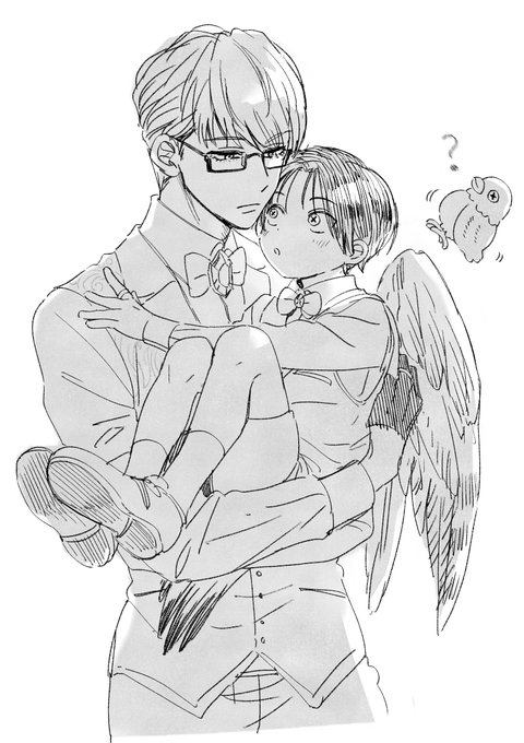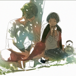 594 2054 うぐちゃんワンドロでこそこそ描いてたやつ。平野くんとなら内番頑張れる平野ねこ可愛がり鶯丸です。 15/05/21 00:09
