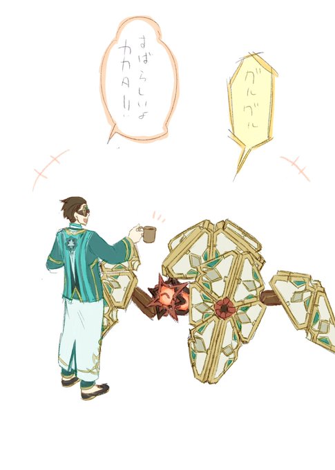 #原神イラスト アバッドイにコーヒーをいれたカカタを描きました カカタにボロボロ泣いた