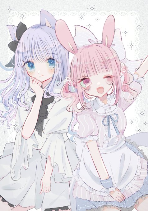 ふわふわふりふりねこ耳ちゃんうさ耳ちゃん🐱🎀🐰 #創作 #イラスト