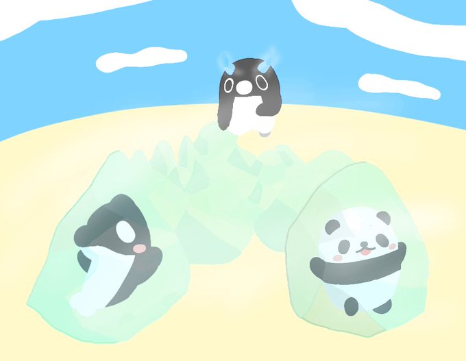 #プロットアニメファンアートテーマドローイング #テイペン #テイペン魚拓 お題:プロットアニメ2作品コラボ テイコウペンギン×混血のカレコレ カゲチヨ×ペンギン