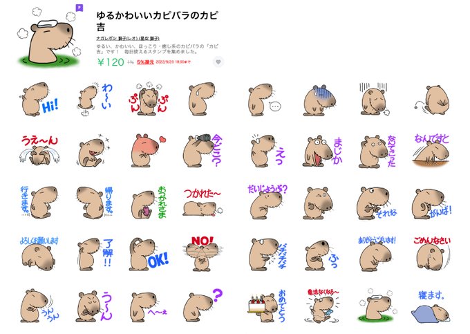 可愛い/ゆるいキャラクターのLINEスタンプを作っています。こちらは前回の絵にもあったカピバラの「カピ吉」くんです。 #イラスト #イラストレーター #キャラクターイラスト #ゆるキャライラスト line.me/S/shop/sticker… store.line.me/stickershop/au…