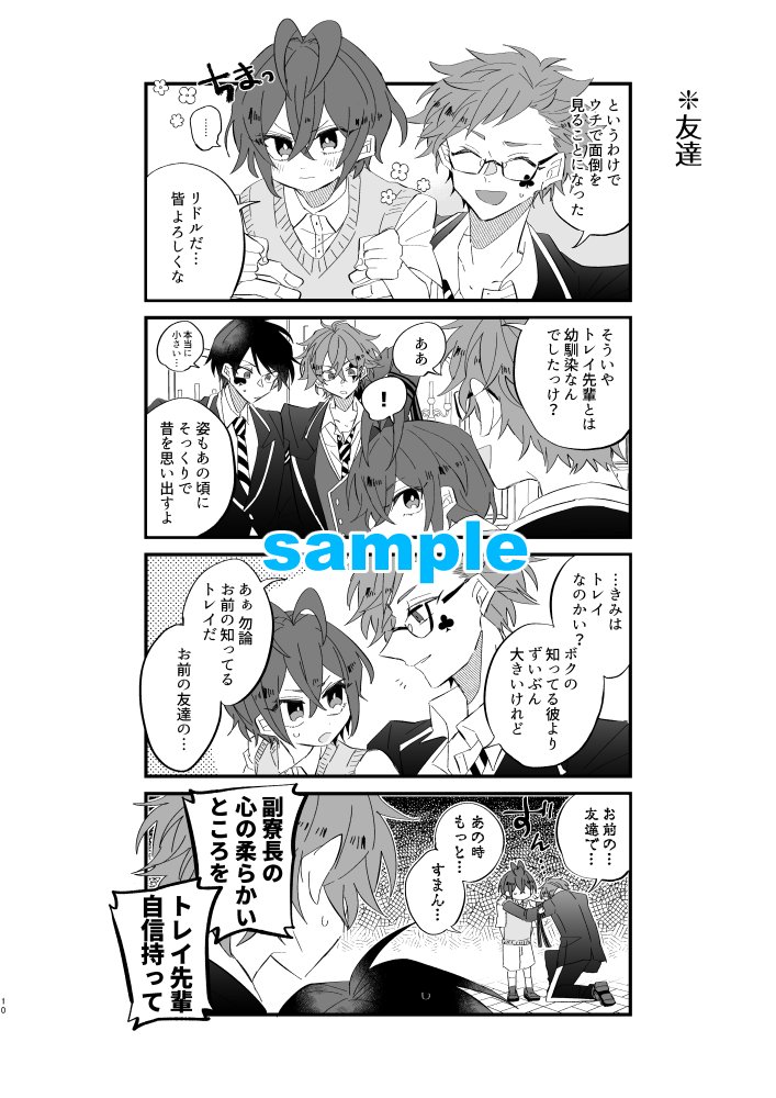 8/28 Beckon of the Mirror 13 南3 ホ31a ねぶそく 新刊サンプル【寮長リターンズ!!】 これまでに出した寮長中心オールキャラ4コマの再録集(+描きおろし)です。小口染めと2.5Dホロ表紙の予定✨長いサンプルはpixivにて! ■pixiv:pixiv.net/artworks/10044… ■委託先:ec.toranoana.jp/joshi_r/ec/ite…