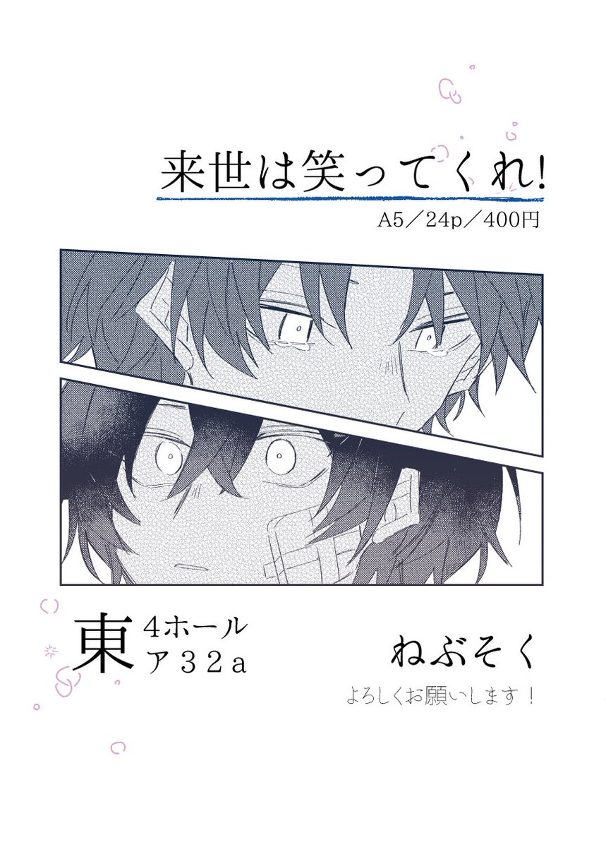 1/29 異譚レナトス19 東4 ア32a ねぶそく 新刊サンプル(1/2) 『来世は笑ってくれ!』 織+太/カップリング無 新人作家odskと高校生のdziくんが、サイン会で邂逅を遂げる話です。 ■委託先:ec.toranoana.jp/joshi_r/ec/ite…