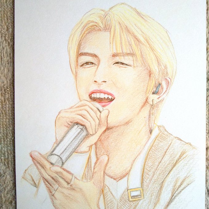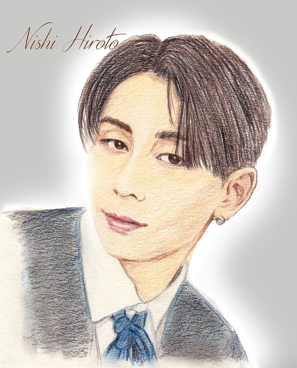 FFのじぇいちゃんが撮ってきてくれた写真の米肌の髙塚くんの表情がカッコよくてつい描きたくなって✏️( ´∀`) #INIfanart #髙塚大夢 #takatsukahiromu #色鉛筆画 #ダブルでオトします #INI