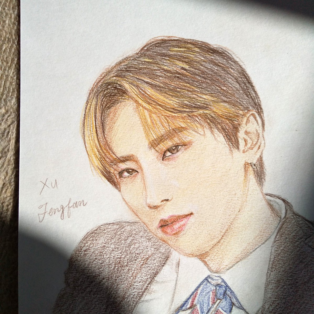 INIの許豊凡(シュウフェンファン)くんの個性を知るべく似顔絵を描いてみる フェンファンといえば、、、 ・中国出身🌏️ ・4か国語話せる秀才 ・「フェンフェンは焼き肉🥩」 ・「就職できました!✨」 #INIfanart #許豊凡 #XUFENGFAN #色鉛筆画 #11人全員描いてく