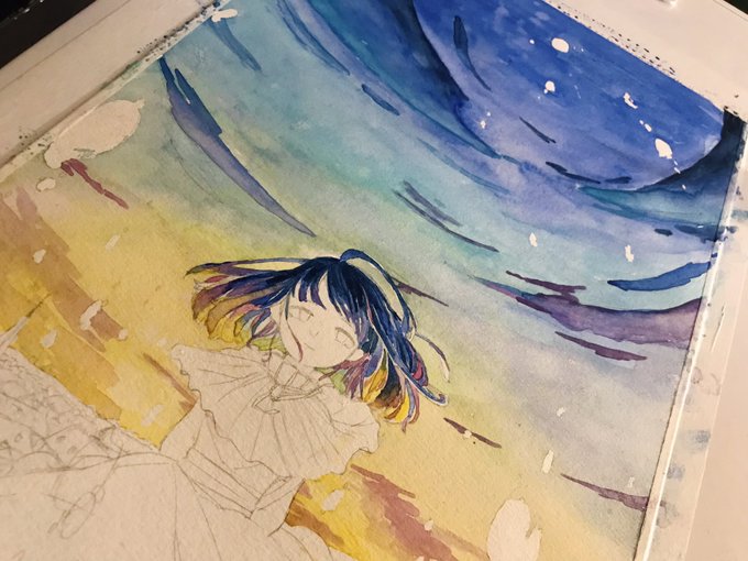 0 1 色味が珊瑚礁すぎる笑笑 反射の練習 #水彩画 #水彩 22/07/03 12:19