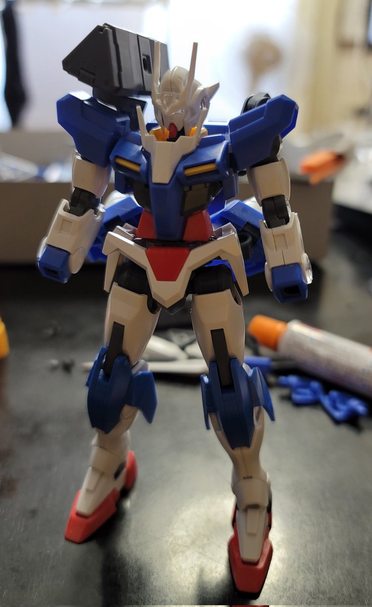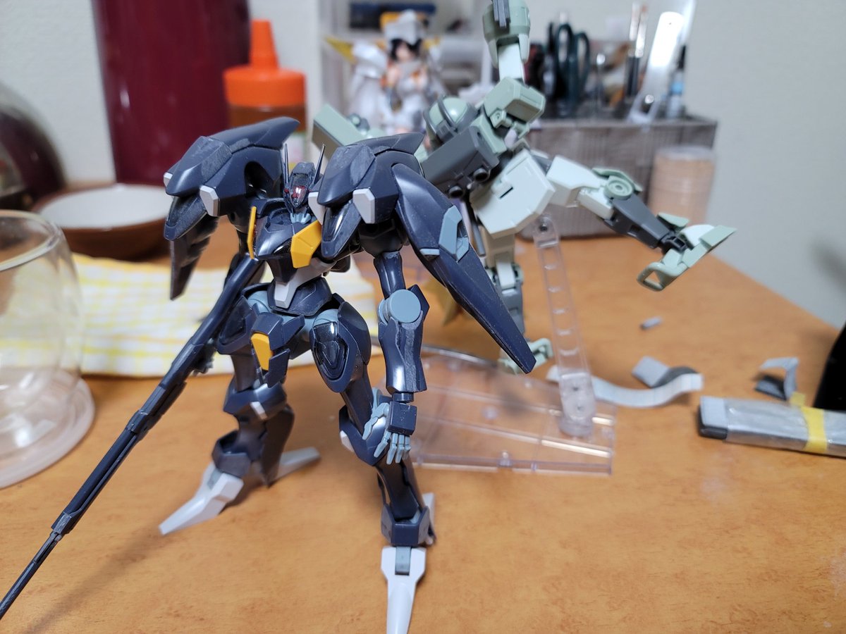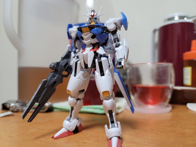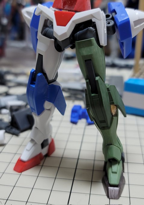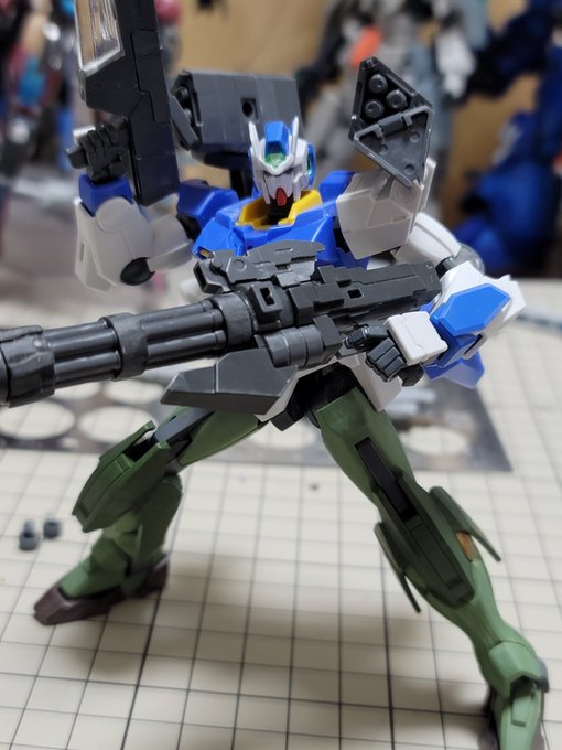 #ガンプラ #ガンプラ好きと繋がりたい #ガンプラの画像貼るとRTされると聞いて 前に言ってたダブルオーのコマンド化。 ダブルオーの代名詞とも言えるツインドライブは腰にジョイントを追加して付くように変更。頭部のアンテナも切って、背中のバックパックには片方ミサイル。もう片方には武器装備