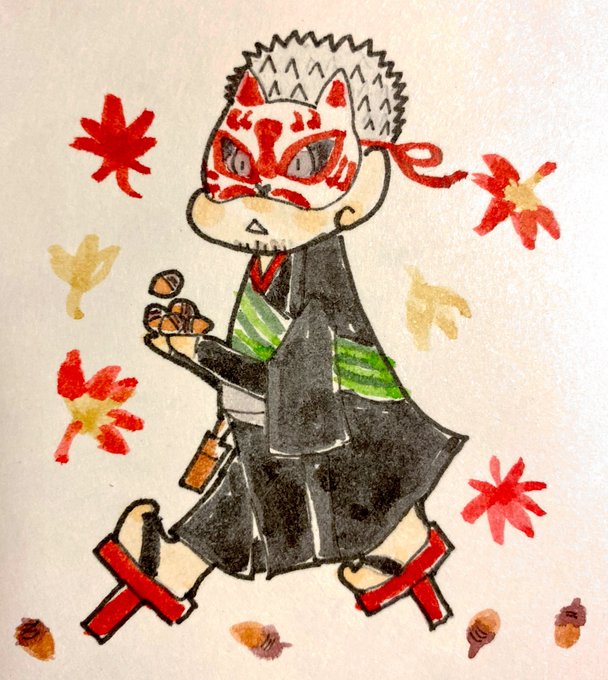 🍁🌰🍁🌰 どんぐり拾ってくる雄狐さんのエピソード聞いて、何だか冬支度をする野生動物みたいだなぁとホッコリしました😊 #幻空堂ファンアート