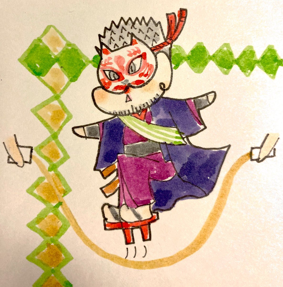 雄狐さんに縄跳びに興じて欲しくて描きました🪢 理由は…自分でも良く分かりません🤔 #幻空堂ファンアート