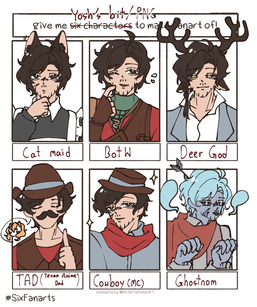 six fanart but make all of them Yosh’s bit. ik my handwriting is bad I try Also which bit is your favorite if u don’t mind me asking, mine is Deer God. #sixfanarts #yoshinomfanart