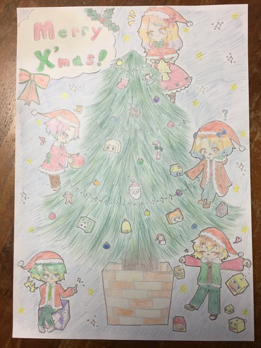 4 46 クリスマスツリーを飾る幼稚園組。🎄✨ メリークリスマス!!(ギリギリ) #50人イラフト #ろぜあーと #やちアート #わどるど #imo64アート #koutanアート 21/12/25 23:59