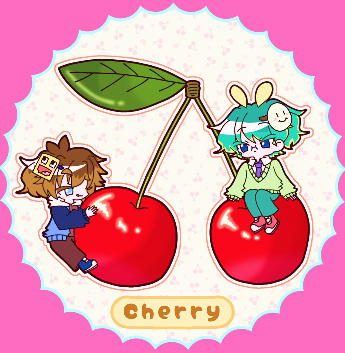 2 15 仮面組とさくらんぼ。🍒 少しお高いけど美味しいよね。 #50人イラフト #koutanアート #imo64アート 22/06/17 21:30