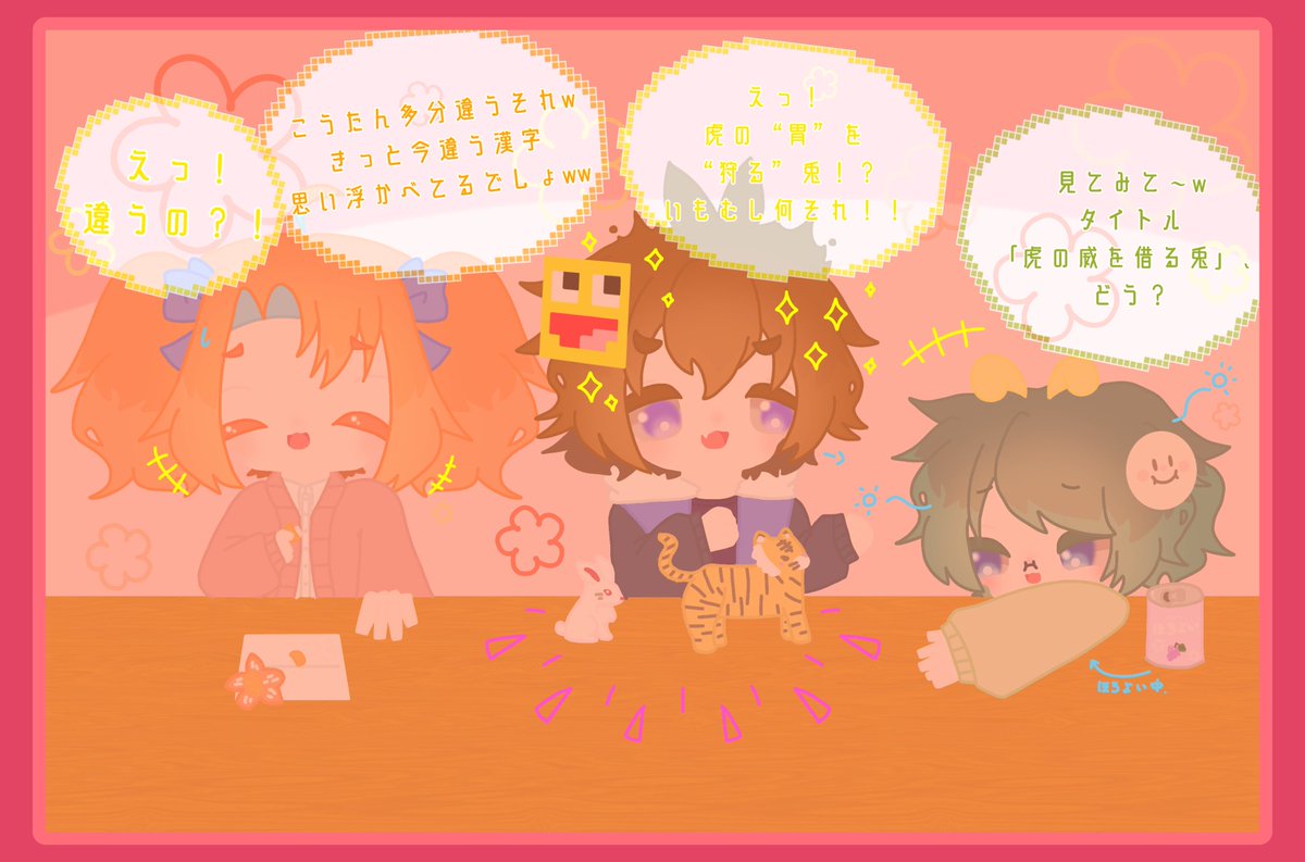 昨日のたくみさん配信より。📹 OPENしているらしい2人。 #50人イラフト #たくみあーと #ふにゃんとアート #imo64アート