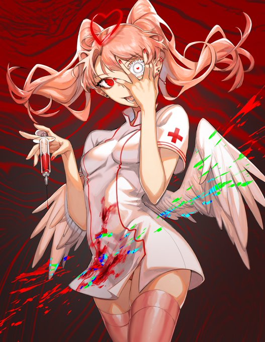 im nechy and i love to draw my oc and love the color red, im also a sucker for edgy stuff 😳#artistsontwitter