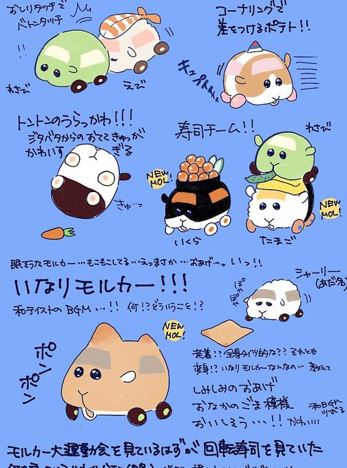 6話!予告見てえびとたまごといくらとわさびで寿司チームだ〜ってしてたらまさかのいなり(ポンポン!和風BGM)ほかにもチアモルが可愛かったり気合充分のテディとかトントンのうらっかわおててキュッてするとことか可愛いシーンがたくさん。Νewモルカーがたくさん出た回でもあった #モルカーDS推し回