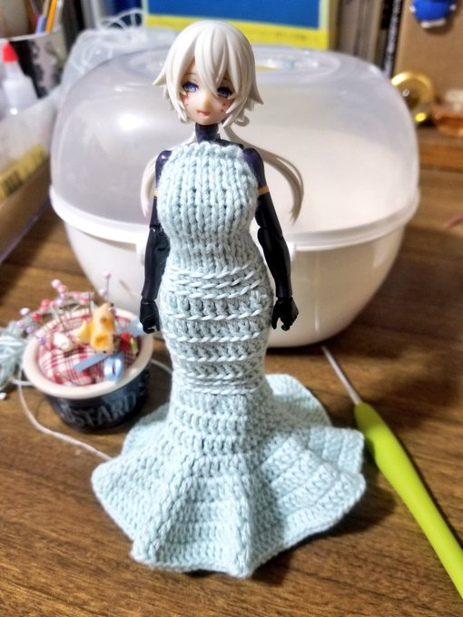 予定より遅くなりましたが、1/12向けオフショルニットワンピをBOOTHに並べました〜〜🥳 フィットしつつも融通の効くサイズに編めたので、よろしくおねがいします! neco-is-here.booth.pm/items/4127470 #メガミデバイス #ねんどろいどどーる #糸つむぐ星