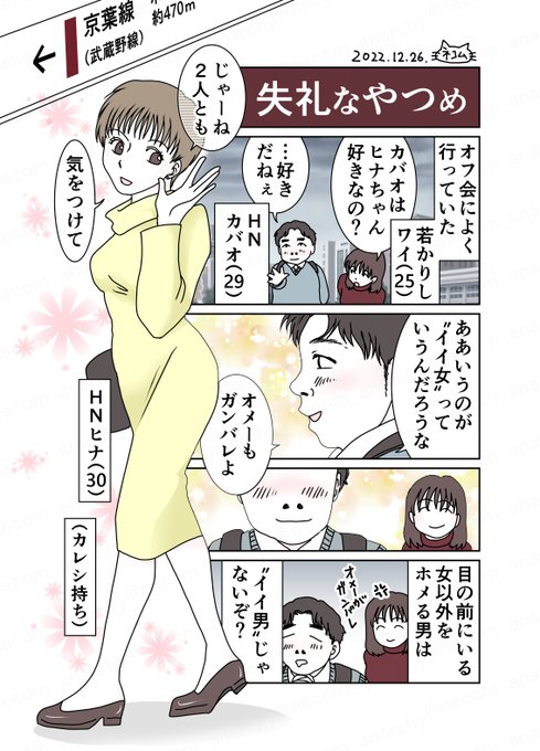 1 0 実際ヒナさんは頭もよく性格も親切だった。が、勝手に比べて人をサゲるんじゃねぇよ。 #エッセイ漫画 #日記漫画 #漫画が読めるハッシュタグ #コミックエッセイ #オフ会 22/12/26 21:39