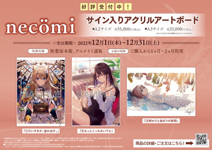 画集発売時に個展で販売しておりましたサイン入りアクリルボードを受注生産していただけることになりました!12/1~12/31まで予約受付中ですので、是非この機会にチェックしてみてください!よろしくお願いします~!😊🙌✨ animate-onlineshop.jp/products/list.… twitter.com/R1QPp4rc6yhP62…