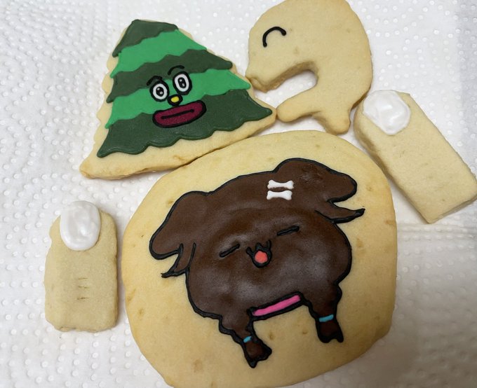 9 45 クッキー練習中🍪 フードペンの下書きはなかなか上手くかけたと思うけど、アイシングって難しいなぁ😑 余った生地でころねすきー作っとこうって何も見ずに切ったら、耳をそぎ落としてしまってた… #できたてころね 22/10/23 17:50