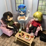 楽屋にて。 パターン1:誕生日と聞いて本番前なのにピザを持ってくる🐯さん。 パターン2:スポンサーからもらったピザをアポロンバディに持っていく🌹ちゃん「1人で食べきれないから一緒にどう?」。 #ブルーローズ生誕祭2022 #カリーナ・ライル生誕祭2022