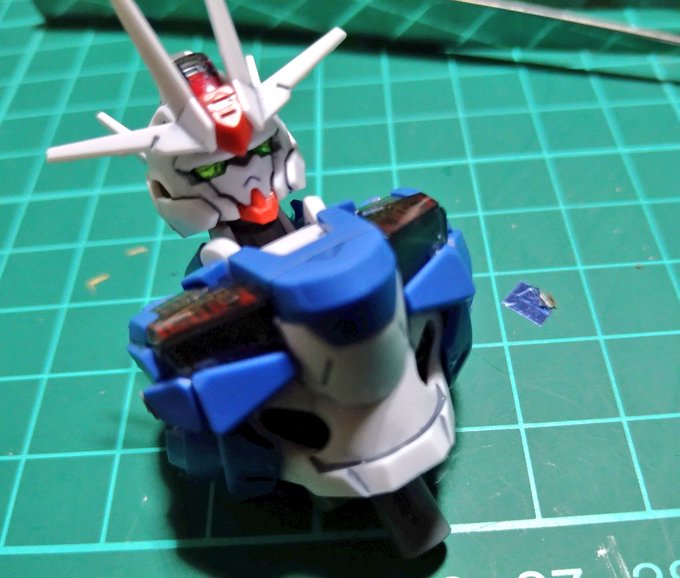 MGゼータ、トサカのカメラの色を間違えてたから青のラピーテープで修正してたらHPが無くなったのでここまで…解釈自由で良いんだけどね😂 (組み立て全く進まず 笑) 明日は仕事だから頑張らねばだ💪( `ω´ 💪) #ガンプラ #ガンプラ好きと繋がりたい #ガンプラの画像を貼るとRTされると聞いて