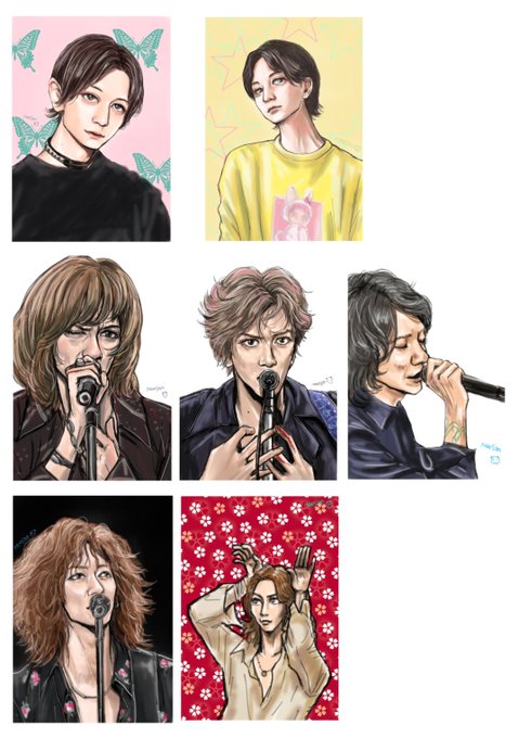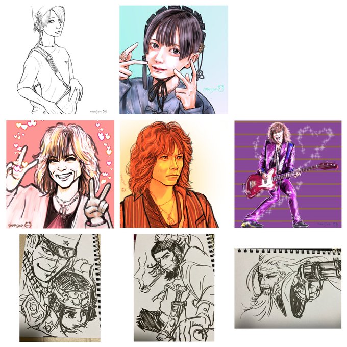 #今月描いた絵を晒す 7月分です☺️ぬりえも置いちゃおう THE YELLOW MONKEY 吉井和哉さん 菊地英昭さん 吉井添さん りくちゃん 永野芽郁さん ぬりえ 矢沢あい展より イガタさん(@burn20200517)の線画より