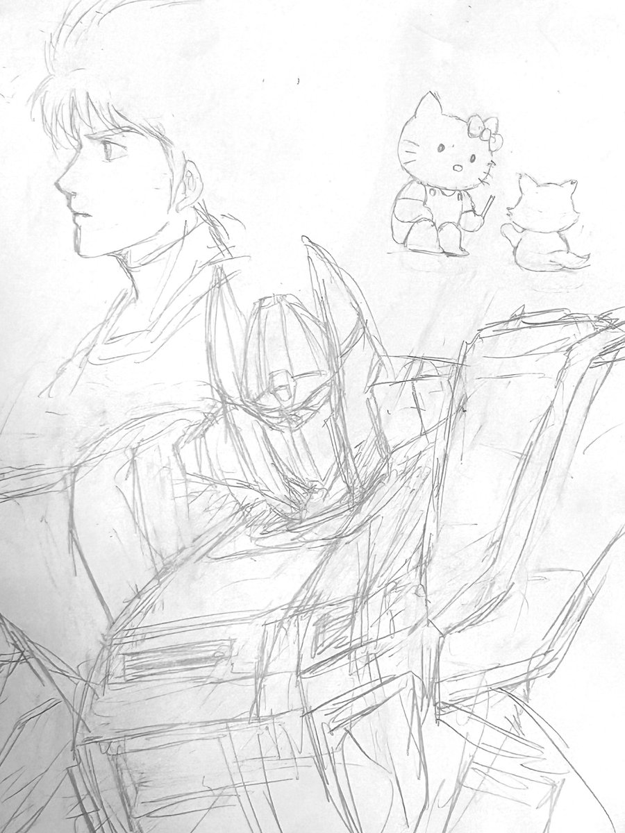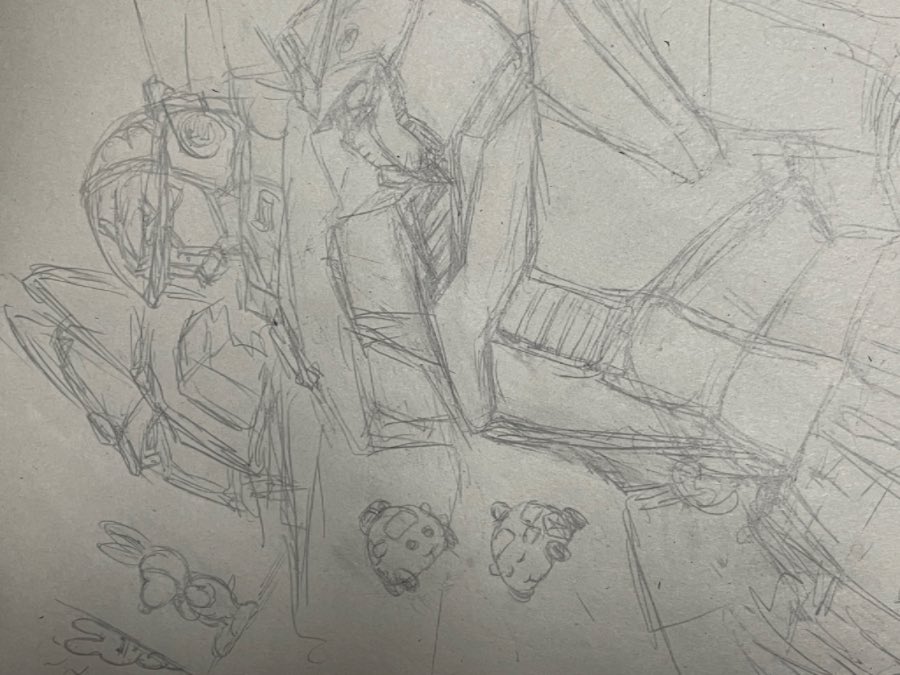 無印のらくがき帳に、脳に浮かんできたものをシャーペンでサーっと描いてみるのもいいもんですよ(ほぼうろ覚えだと逆に気が楽