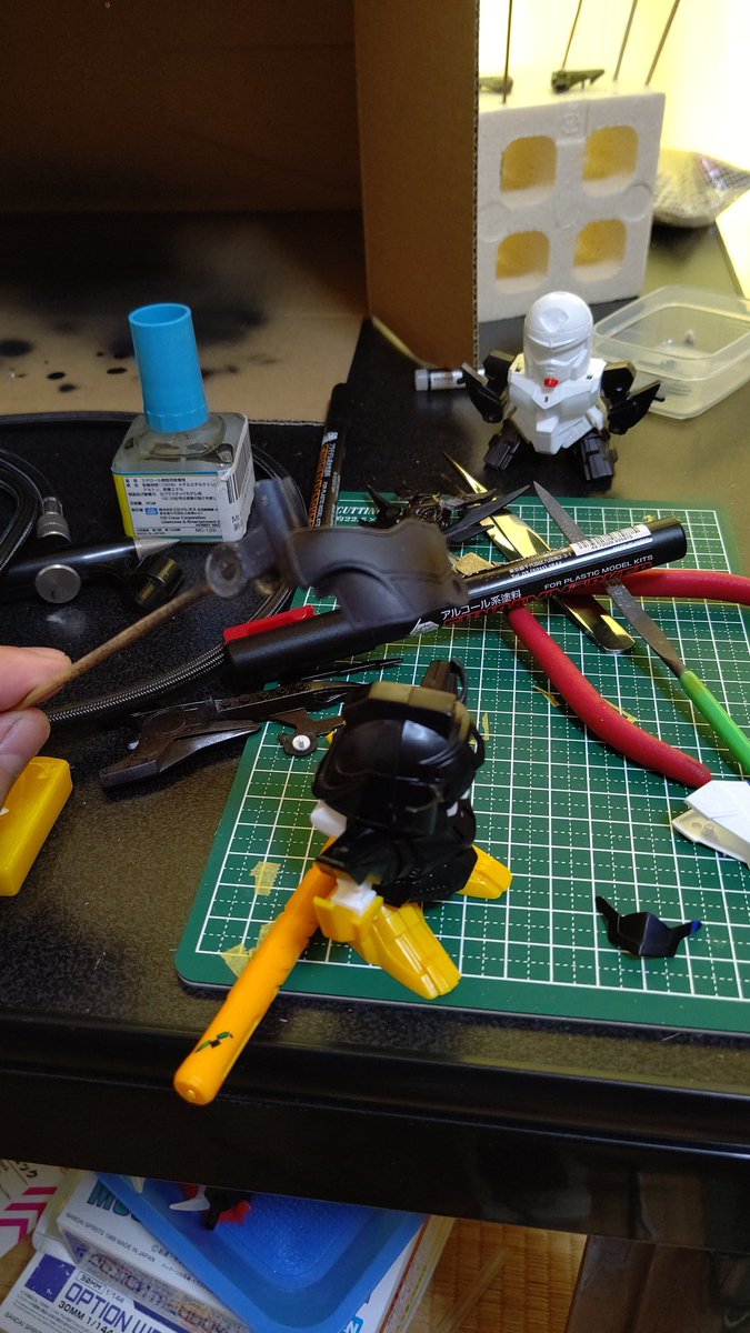 どこかで『指輪パレットが使いやすい』と聞いたので筆とセットになってるのを購入してみまんた(·ω·`) 2枚目はダブスカとV2のミキシング (·ω·) #ガンプラ好きと繋がりたい #ガンプラの画像を貼るとRTされると聞いて