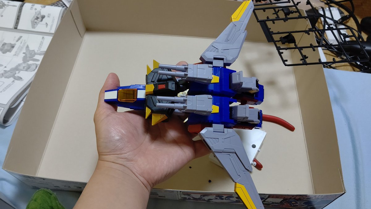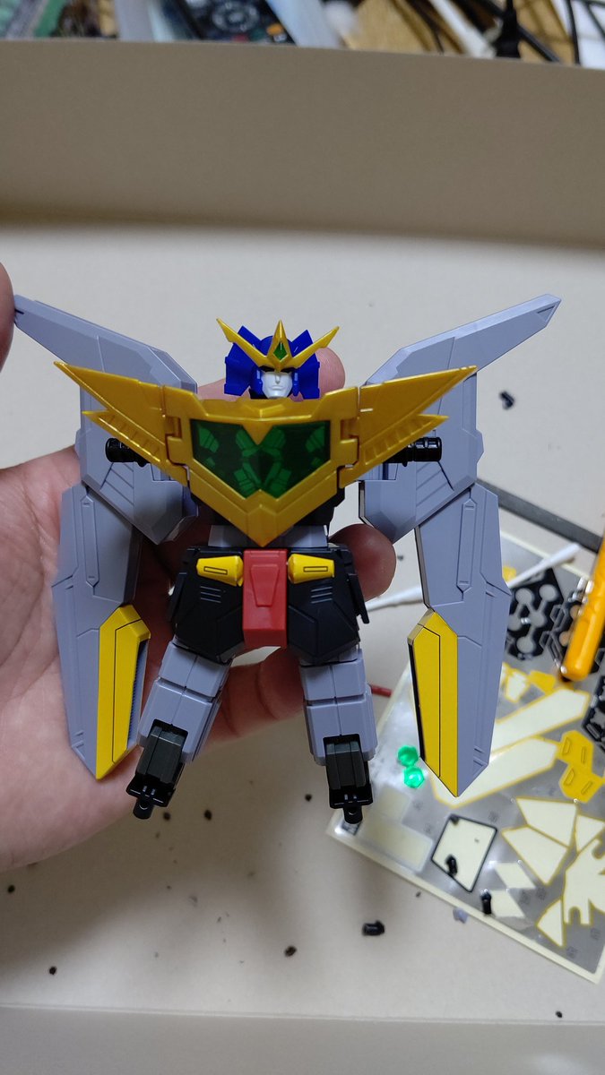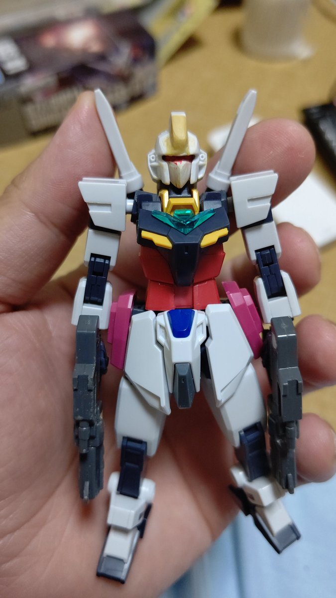 塗装剥げあったり、個体差なのか合体時の腰回りのパーツがポロリするのが残念(·ω·`) あと、脚と腰を繋ぐパーツ…無理やり付けると白化して最悪割れる可能性もあるのできついと感じたら少し削るといいかも(·ω·`) #ガンプラ好きと繋がりたい #ガンプラの画像貼るとRTされると聞いて #エクスカイザー