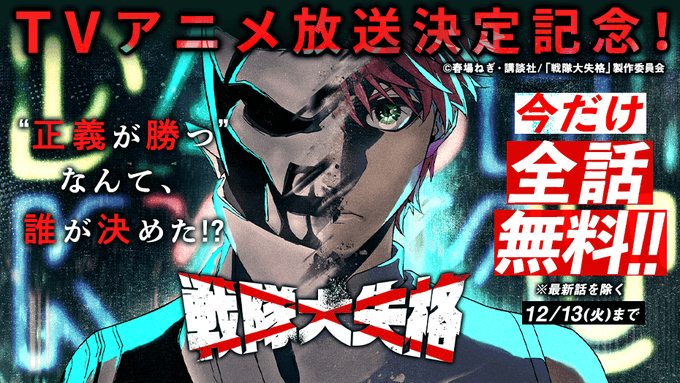 なんと戦隊大失格をアニメ化してもらえることになりました! 監督はさとうけいいちさん! いい作品になるよう、原作者としてできることを頑張っていきます! twitter.com/5Hanayome/stat…