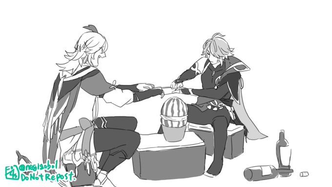 782 5831 #haikaveh #アルカヴェ 実装前に描いた落書き清書した 両片思いでこのあと付き合い始める🌱🏛 23/01/22 10:40