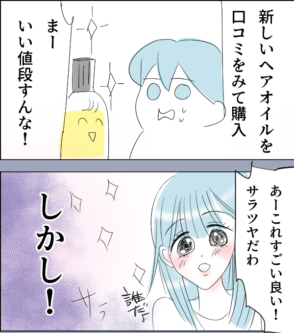ネットで買うとあるあるですよね…。まぁ良いお値段したので使い続けますけどね…ヘアオイルとしての品質は良かったし…タクシーと運転手のおじさんがちらつくけど…あっ全然エイプリルフール関係なくてすいません。 #漫画が読めるハッシュタグ