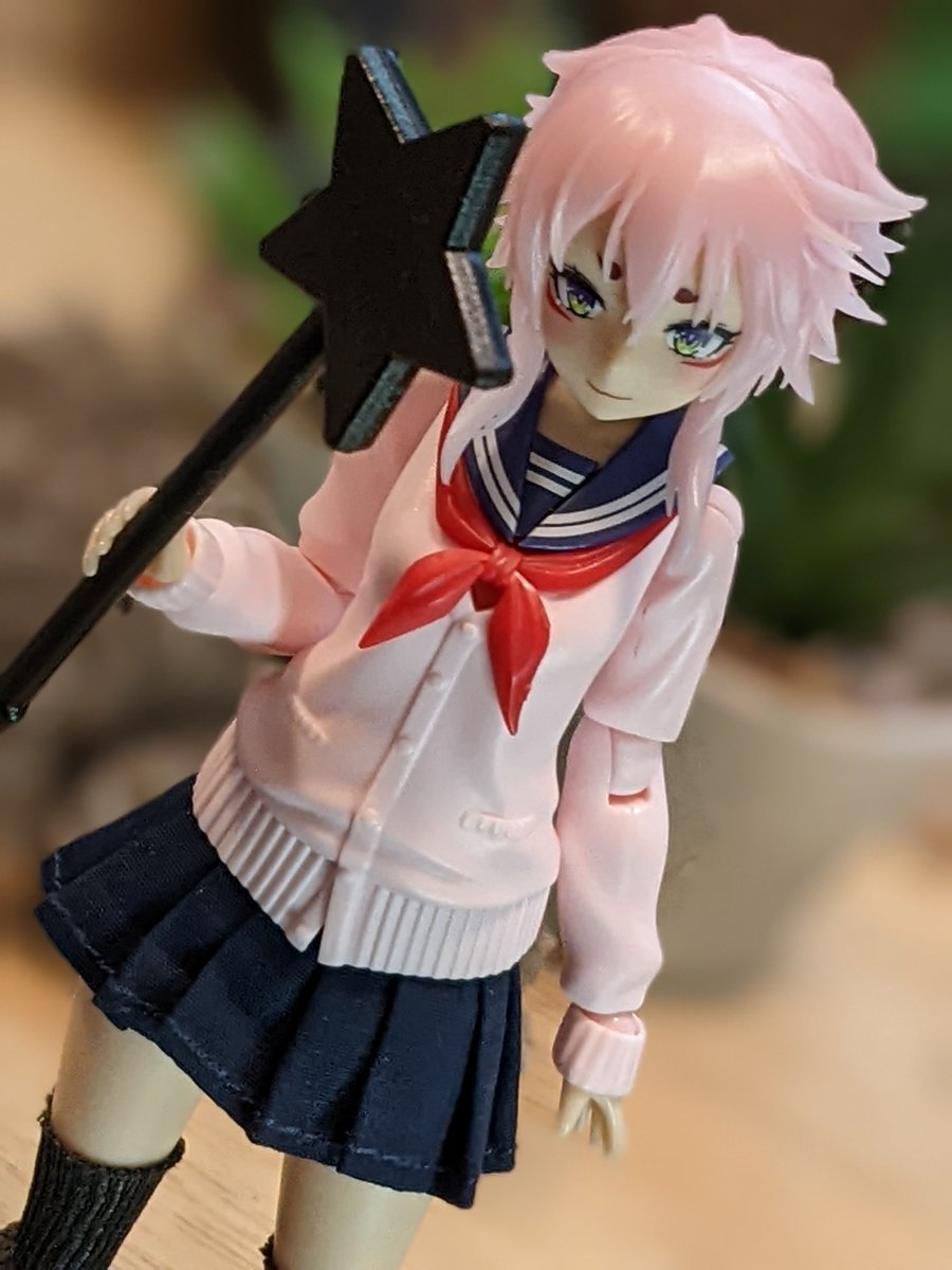 8 35 お店感払拭、創彩パーツ組み換え髪色変えて 足元は当然モチ様のレギンスを♪ #創彩少女庭園 布スカートは娘のドール服をちょっと借りてきてw おぉ!エクスさん!学生に見えるじゃないっすか❣ この後、寝落ちしてました。 #メガミデバイス 22/03/31 12:34