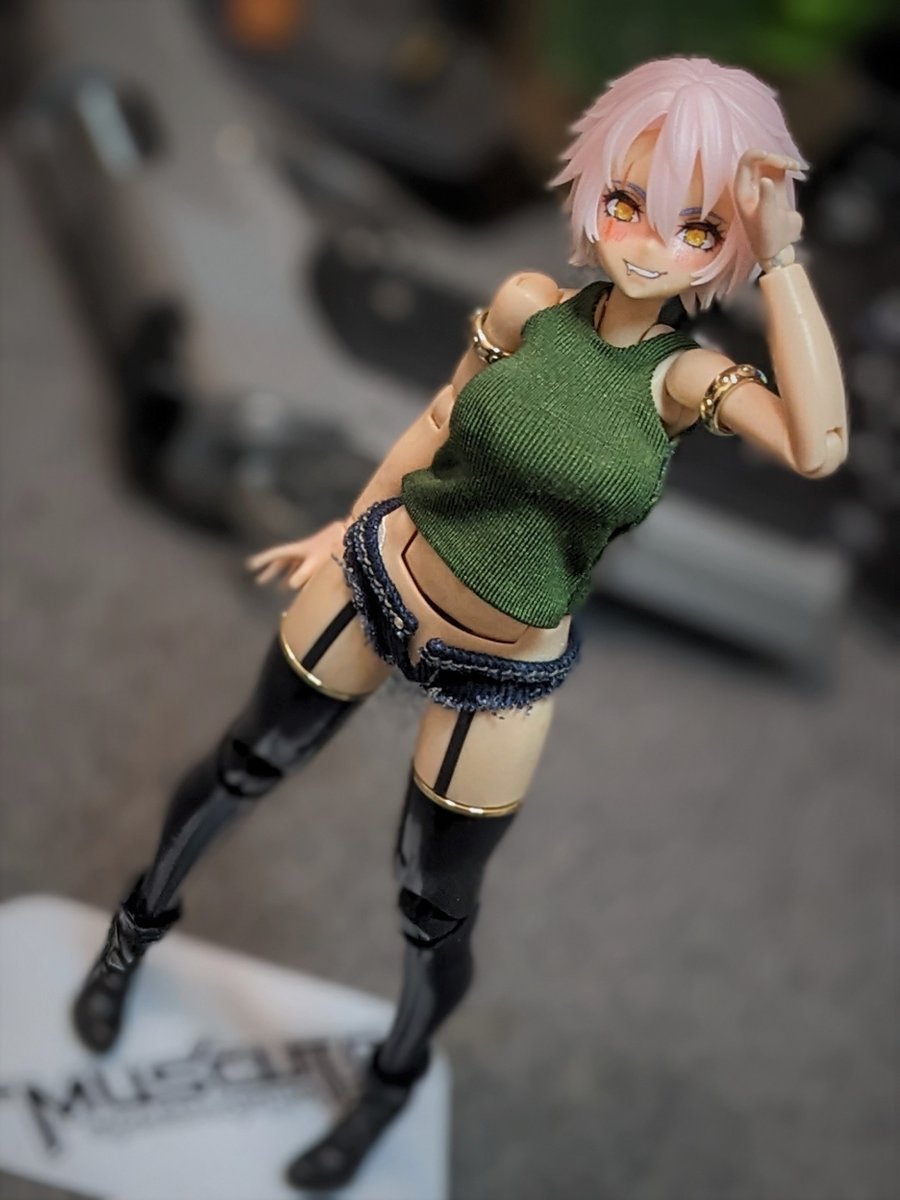 「スカートやだ💦」「んなコトない可愛いぜ❣」 ローちゃんに上下を着せたら急に生気を帯びた♪ #メガミデバイス (またホットパンツ買ってこよう