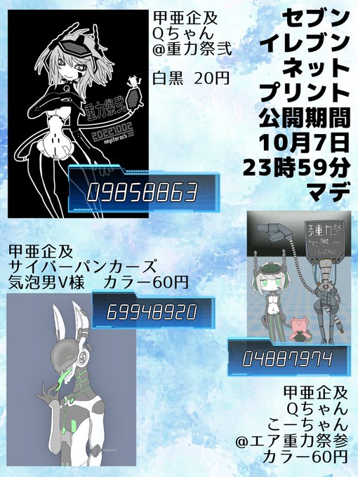 13 17 〖ネットプリント公開します〗 弐瓶作品・甲亜企及ファンアートのゆるい過去絵中心+オリジナルのイラストを登録しています。現地以外の別方面でイベント賑やかし出来ましたら……!一番推したいイラストが一番安い! 22/10/01 00:06