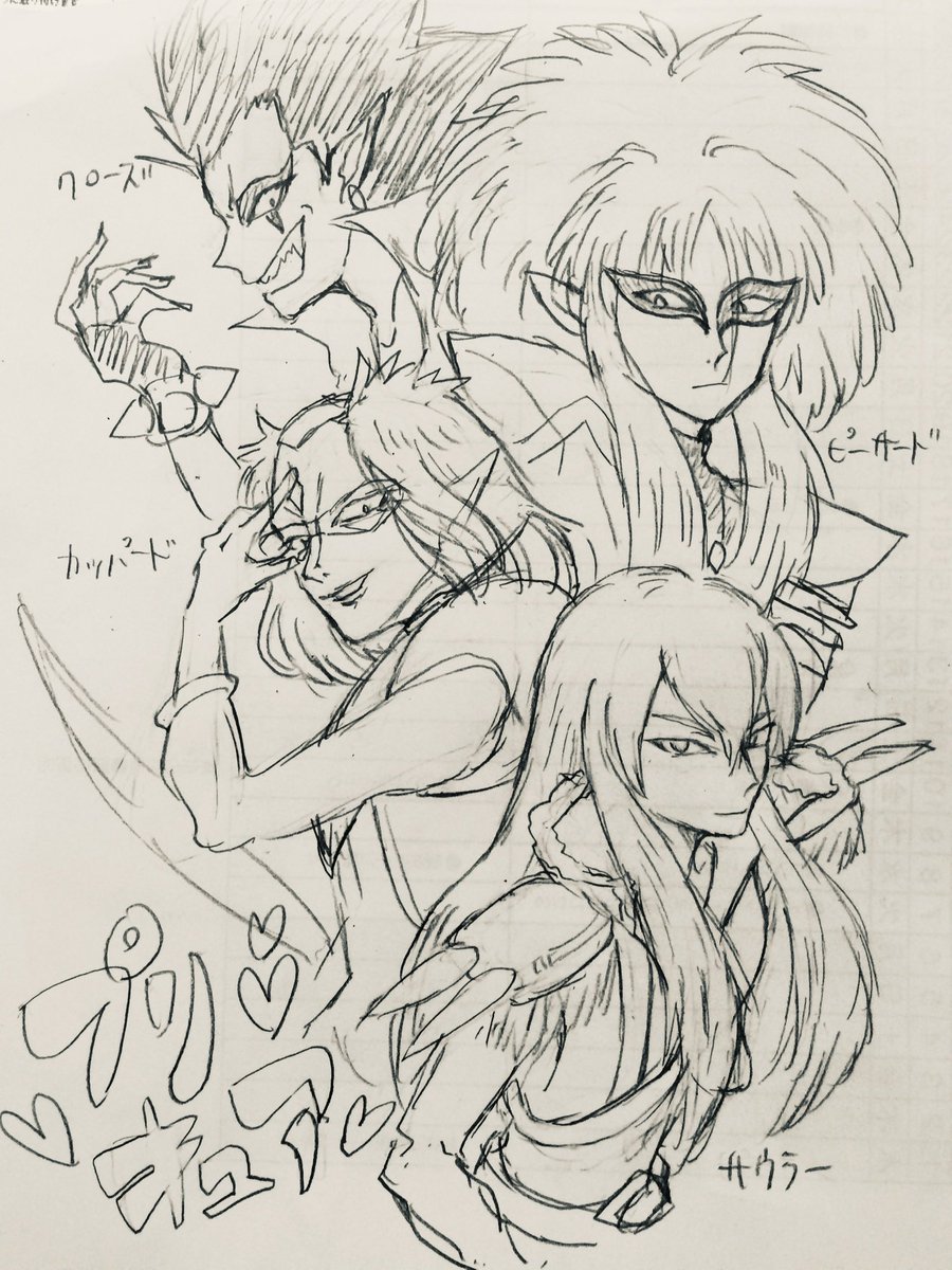 人体バランスの崩れとかは抜きにしてアタリもろくに取らずにアナログで画面に4人も配置してるの異常では(当社比)?情熱が。職場で隠しながら描くような落書きじゃないと思うな。