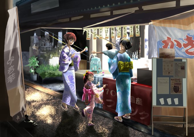 夜店 #背景 #夏休み #浴衣 #夜店 #かき氷 #夏祭り pixiv.net/artworks/10027…