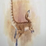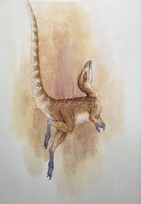 I found a Mesozoic red panda dead on my watercolor paper....Sad.😥 #Sinosauropteryx #watercolor #paleoart