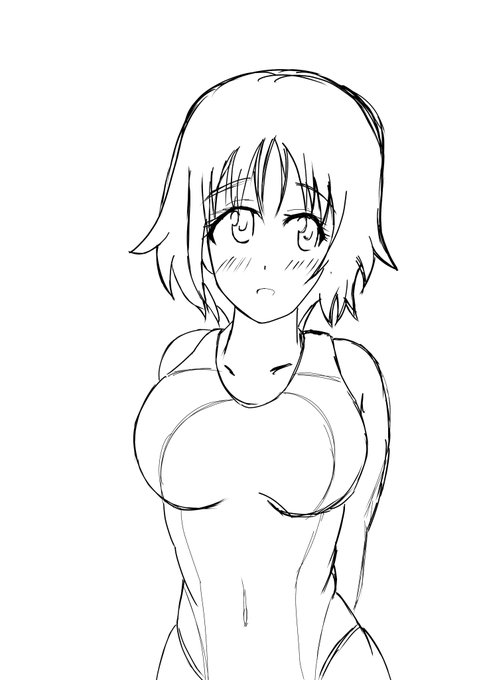 9 37 #ガルパン版深夜のお絵描き60分一本勝負 #ガルパン版深夜のお絵描き60分一本勝負_20201028 お題「フリー」 競泳水着描いてみたかった・・・時間切れ 20/10/28 22:31