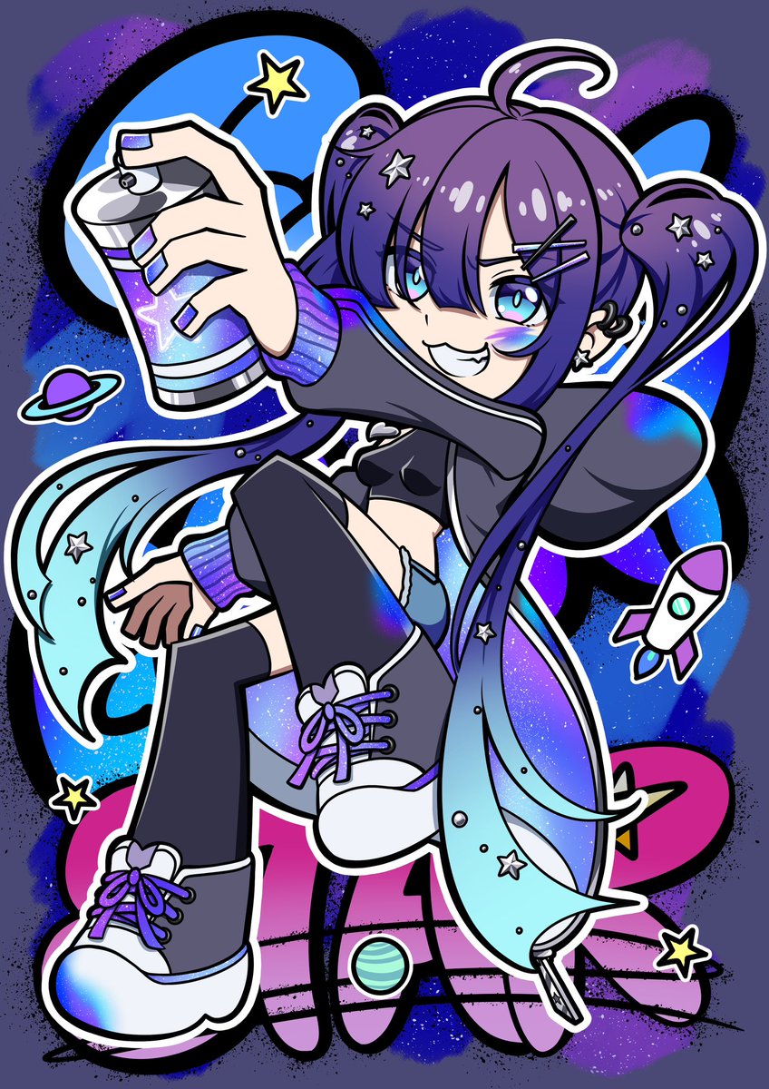 ★ギャラクシースプレー★ #illustration #オリキャラ #創作 #イラスト #ツインテール #ミニキャラ