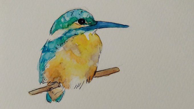 初カワセミ描いた。 #絵 #水彩 #野鳥 ********ボソボソ………… 目に見えて悪いことするやつより、見えないように人を苦しめるやつ、汚いと思う。