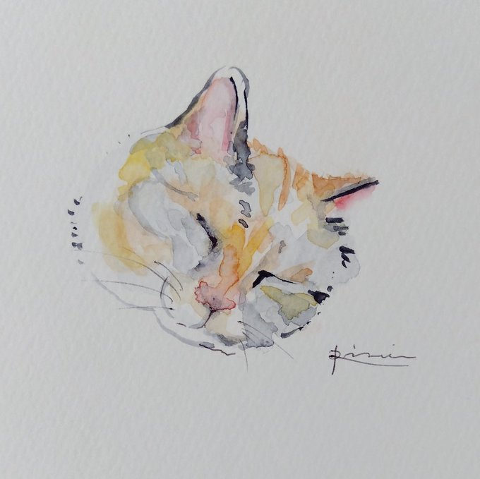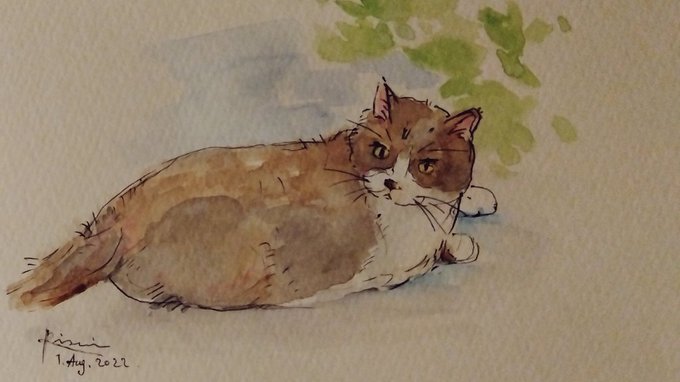 3 24 今日は急いで描きました #猫のいる暮らし #猫の絵 #水彩画 #猫好きさんと繋がりたい ************** TLでお見かけした猫さん達を参考に、描かせて頂いています。ありがとうございます🙇🏼 22/08/01 21:23