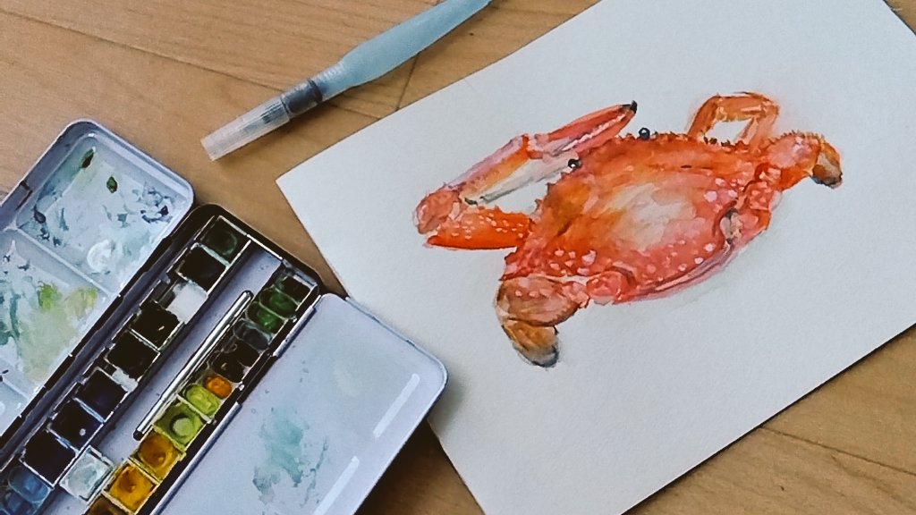 0 11 島で歩いていたらカニを貰った。おじさんが朝採ったワタリガニだそう。 嬉しくて描いてしまったw 🦀大きかったし美味しかったです。ごちそうさまでした🙏 #絵 #水彩画 22/09/29 17:49