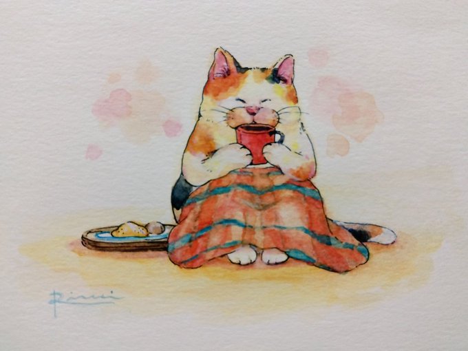 1 16 さむいさむい。 温かいの飲んで温まろう☕ なネコを描いたので見てください。 #猫好きさんと繫がりたい #猫の絵 #水彩画 #イラスト #絵 22/11/04 23:01